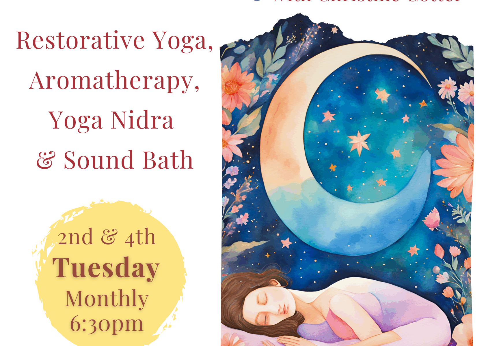 Step into a sanctuary of peace with this 75-minute healing yoga experience. Designed to nurture your body, mind, and spirit, this session combines the restorative benefits of gentle yoga with the soothing power of light-touch aromatherapy, a transformative Yoga Nidra meditation, and a mini sound bath to wash away stress and leave you feeling renewed. Whether you’re seeking deep relaxation or emotional balance, this class provides a restorative escape that will leave you floating in a state of pure tranquility.